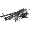 Featuring a double-butted 14 gauge spoke (2.0/1.8/2.0mm) the Pro Spoke Kit is lighter AND stronger than traditional straight 14 gauge spokes. This is possible by using a spoke that is 14g at the ends but 15g in the middle; this combination makes for an exceptional strength to weight ratio. Additionally included is lightweight black anodised aluminium nipples to further reduce rotational weight.